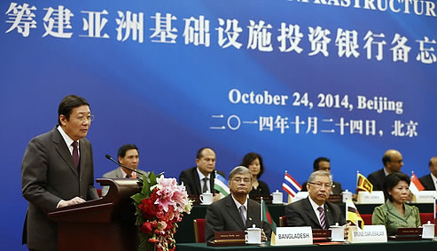 ▲ 26일 정부는 AIIB에 참여하기로 결정하고 이 사실을 중국에 통보했다. 사진은 지난해 10월 베이징에서 열린 중국 AIIB 설립 양해각서 체결식 모습. © 세계뉴스 |