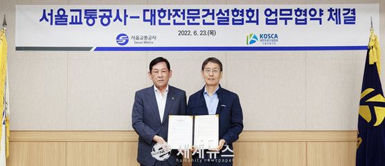 [세계뉴스 전승원 기자] 서울교통공사(이하 공사)가 대한전문건설협회 서울특별시회(이하 협회)와 ‘건설업 서울교통공사, 대한전문건설협회와 손잡고 안전과 건설업 상생 협력 두 마리 토끼를 잡는다.