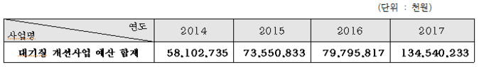 ▲ 서울시 대기질 개선 관련 사업 예산편성 현황 © 세계뉴스 |
