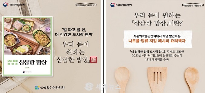 한편 식약처는 가정에서도 건강한 식생활을 실천할 수 있도록 나트륨·당류 저감 요리법을 소개하는 ‘우리 몸이 원하는 삼삼한 밥상’을 매년 발간하고 있으며, 올해는 ‘더 건강한 도시락 한 끼’를 주제로 열세 번째 삼삼한 밥상을 발간했다.