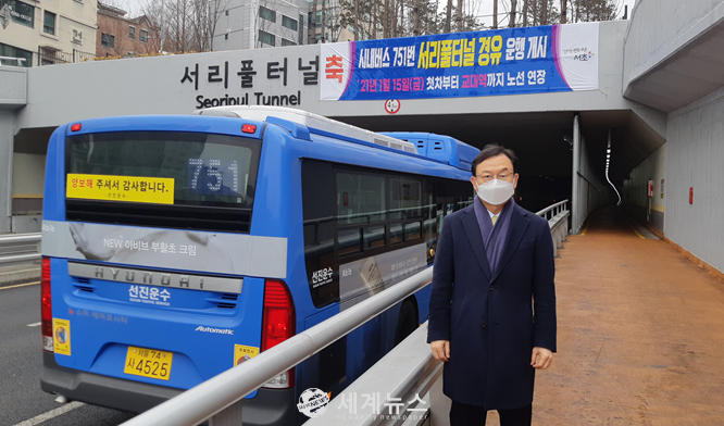 [세계뉴스 정서영 기자] 2019년 4월 서리풀터널 개통 후 21개월 만에 대중교통의 대표적인 수단인 간선버스(751번)가 15일 첫 차부터 서리풀터널을 통과하여 교대역까지 연장 운행을 시작했다.