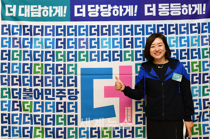 ▲ ‘더불어민주당 여성지방의원 워크숍’이 지난 10일 여의도 켄싱턴 호텔에서 열린 가운데 조규영 부의장(여성지방의원협의회 공동대표)이 엄지척을 내보이고 있다. © 세계뉴스 |
