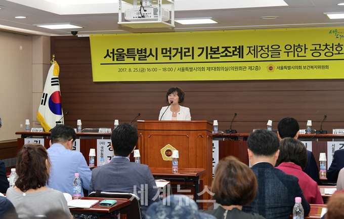 서울시의회 보건복지위원회(위원장 박양숙, 더불어민주당, 성동4)는 서울시의회 의원회관 제1대회의실에서 지속가능한 먹거리체계 확립과 서울시민의 먹거리보장 실현을 목적으로 하는 ‘서울특별시 먹거리 기본조례’가 대표발의 등 제정을 위한 공청회를 지난 25일 개최했다.