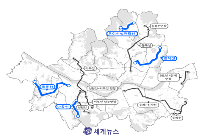 ▲ 면목선, 우이신설연장선, 난곡선, 목동선 등 4개 노선 비(非) 강남권 도시철도 사업을 재정사업으로 전환해 2022년 이전 조기착공. |