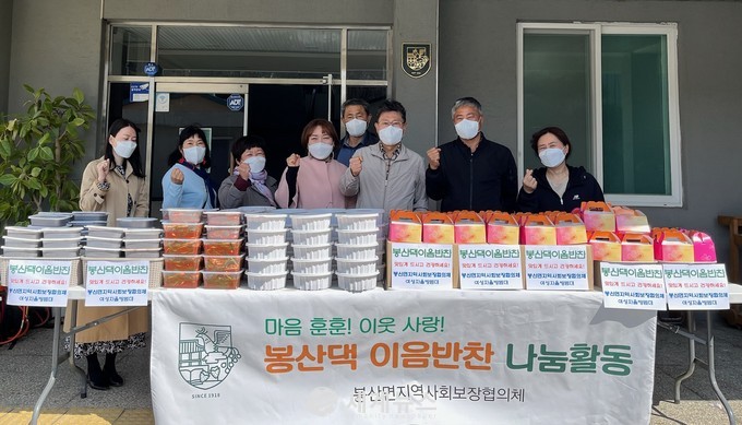 고진성 봉산면장은 “코로나로 힘든 와중에도 봉산댁 이음반찬 나눔활동을 통해 지역사랑을 실천해주신 협의체에 감사드린다”며 “앞으로도 취약계층이 소외되지 않도록 적극 노력하겠다” 고 전했다.