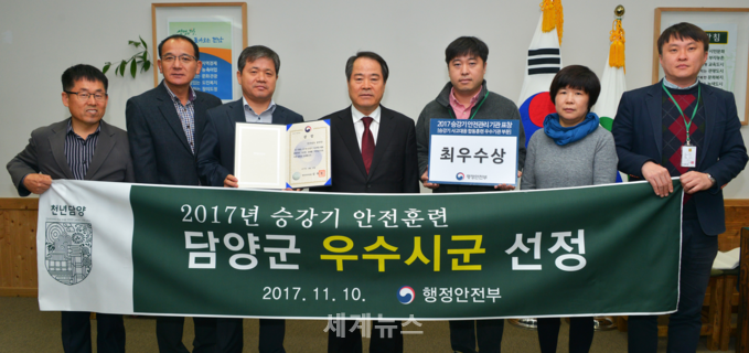 [세계뉴스] 한차수 기자 = 담양군은 최근 행정안전부가 주최한 ‘승강기 안전의 날’ 행사에서 전국 90개 지방자치단체를 대상으로 승강기 사고대응 실제훈련을 종합평가한 결과, 담양군이 우수시군으로 선정돼 최우수상(행정안전부 장관상)을 수상했다고 밝혔다.