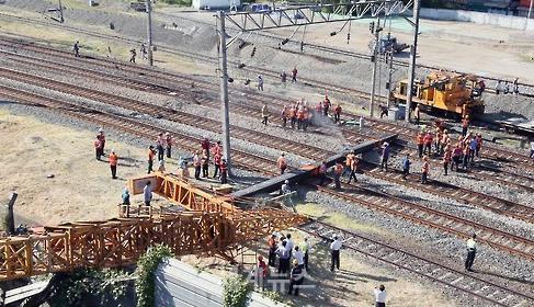 ▲ 선로를 덮친 크레인 '1호선 부평역' © 세계뉴스 |