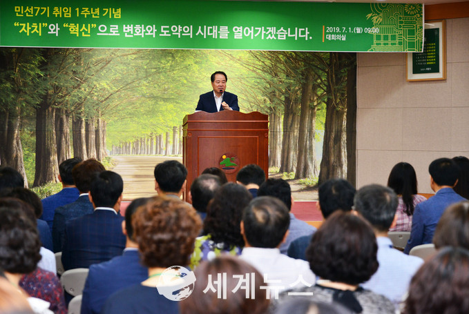[세계뉴스] 한차수 기자 = 최형식 담양군수가 7월 1일, 별도의 기념행사를 생략하고 ‘소통’과 ‘봉사’로 민선7기 1주년을 맞이해 화제를 모았다.