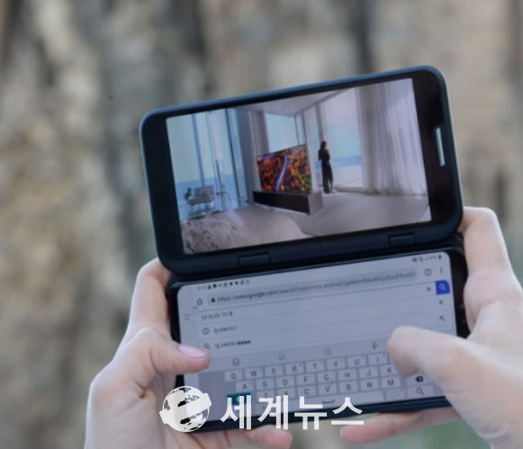 [세계뉴스] 온라인뉴스부 = 스마트폰 커버를 끼우니 2개의 세상이 펼쳐진다. 왼쪽 화면에서 유튜브 영상을 틀어 보면서 오른쪽 화면에서는 출연 배우의 정보나 영화 줄거리를 찾을 수 있다. 가로로 화면을 돌리면 마치 작은 노트북 같다.