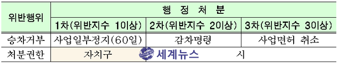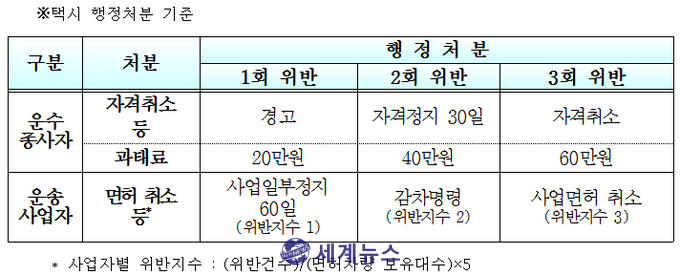 승차거부 기사가 많아 위반지수가 일정 수준을 넘은 운송사업자에 대해서는 자치구가 1차(60일 사업일부정지), 서울시가 2차(감차명령), 3차(사업면허 취소) 처분을 내렸다. ‘택시운송사업의 발전에 관한 법률’에 처분 근거 규정이 마련돼 있다.