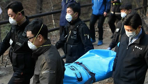 ▲ 9일 오후 북한산 형제봉 매표소 인근에서 숨진 채 발견된 성완종 전 경남기업 회장의 시신을 경찰 관계자들이 옮기고 있다. (평창동 북한산 지역서 경찰견이 실종신고 7시간여 만에 찾아) © 세계뉴스 |
