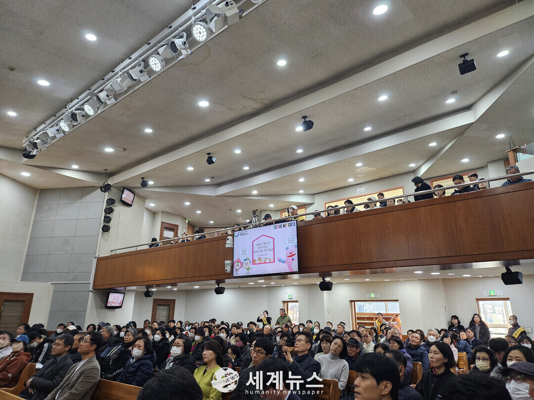 [세계뉴스 = 조홍식 기자] 서울 광진구(구청장 김경호)가 19일 구의2동 새밭교회 강당에서 구의동 46번지 일대 재개발사업, 신속통합기획 주민설명회를 개최했다.