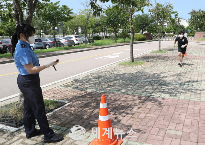 체력검사는 윗몸일으키기, 팔굽혀펴기, 양손악력, 10m 왕복달리기 등을 측정했으며 코로나19 감염 예방을 위해 매 종목마다 지원자들 간의 간격을 2m 이상 유지했다.