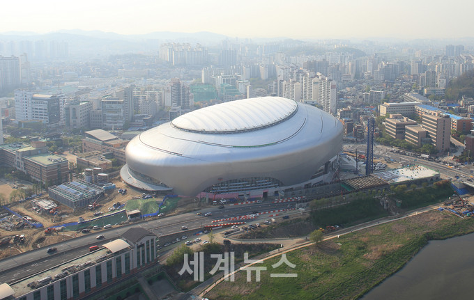 □ 돔구장 내부 흡음재로 마감. 천정에는 흡음성능이 높은 내막 설치, 공연장 내부 음향 성능 향상. 일본 도쿄돔의 잔향시간인 5.5초보다 우수한 5초 이내의 잔향시간 구현.