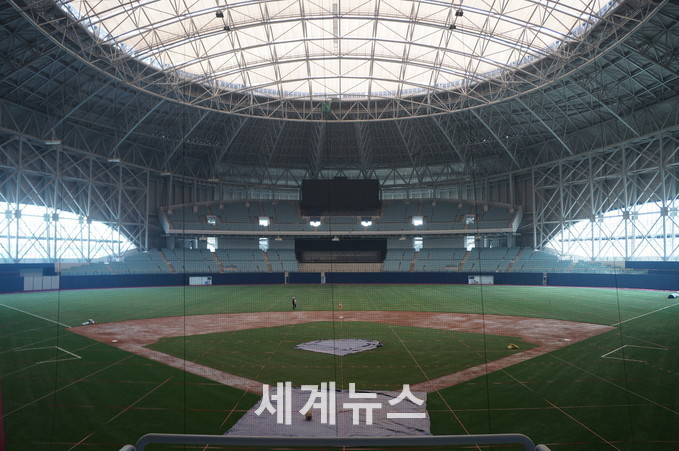 [서울=세계뉴스] 전승원 기자 = 국내 최초의 돔야구장이자 세계 최고 수준의 첨단 기술이 집약된 복합체육문화시설인 '고척스카이돔'이 공사를 마무리하고 15일 그 베일을 벗었다. 이로써 100년이 넘는 한국야구 역사에서 돔구장 시대가 본격 개막하게 됐다.