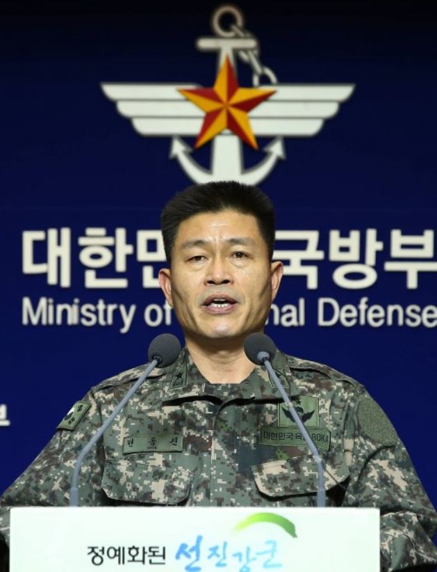 ▲ 전동진 합참 작전1처장. 12일 서울 국방부에서 북한의 탄도미사일 발사 관련 브리핑을 하고 있다. © 세계뉴스 |