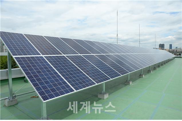 ▲ 개봉1빗물펌프장에 구로햇빛발전소 1호기가 건립됐다. 9월부터 가동시켜 연간 36,135KW의 전기를 생산해 연 1,200만원의 매출이 기대되고 있다. © 세계뉴스 |