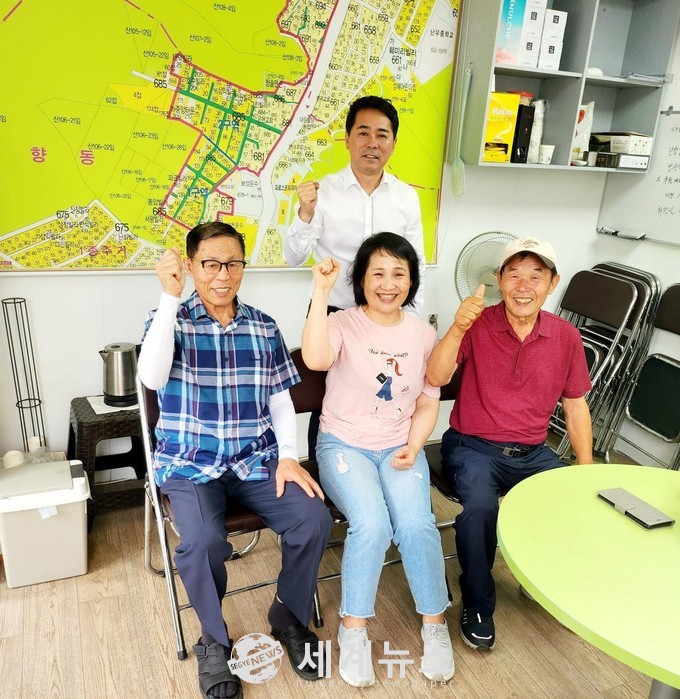▲ 임만균 서울시의원이 난곡동 697-20일대 모아타운 대상지 선정과 함께 조합장들과 자축하고 있다. |