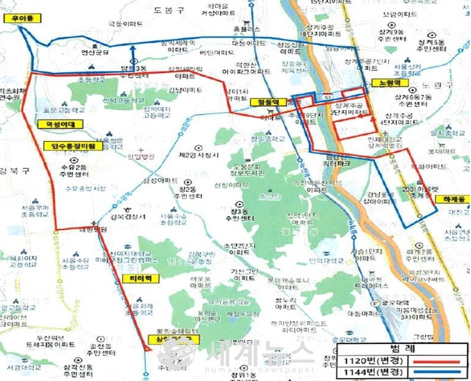 서울시는 오는 13일 첫차부터 1120번과 1144번 시내버스의 노선을 조정하면서 도봉구 해등로 주변 지역주민들이 창동역과 노원역으로 쉽게 접근할 수 있도록 했다.