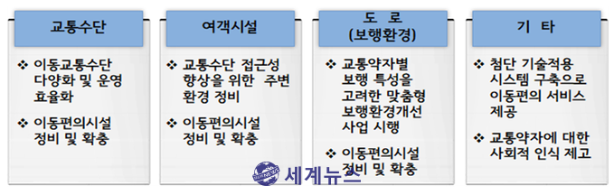 서울시는 이 같은 내용을 포함한 ‘제3차 교통약자 이동편의 증진계획(’18~’22)‘을 확정 고시하고, 장애인의 사회활동 증가 및 인구 고령화 등을 고려해 4개 분야 ▲교통수단 ▲여객시설 ▲도로(보행환경) ▲신기술 도입 31개 과제를 선정해 중점 추진한다고 밝혔다.