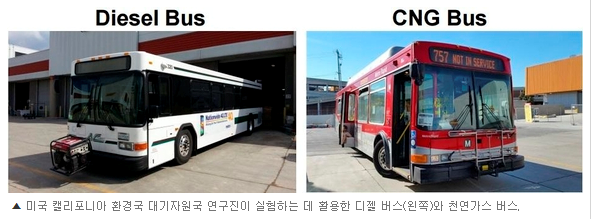 미국 캘리포니아 환경부 대기자원국 소속 재미 과학자 나광삼 박사가 최근 공개한 ‘디젤 버스와 천연가스 버스의 배출 가스 비교 분석 연구 보고서’에 따르면 천연가스 버스가 2차 미세먼지를 생성하는 데 영향을 주는 암모니아를 디젤 버스보다 약 2배 많이 배출하는 것으로 분석됐다.