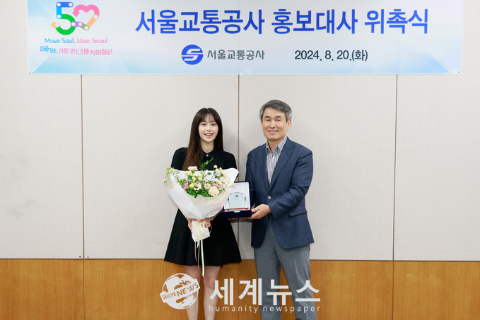 [세계뉴스 차성민 기자] 서울교통공사(사장 백호)는 가수 겸 방송인 ‘츄(CHUU)’를 ‘서울지하철 개통 50주년 홍보대사’로 위촉하고, 20일 서울교통공사 본사에서 홍보대사 위촉식을 열었다고 밝혔다.
