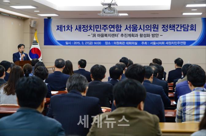 [세계뉴스 전승원 기자] 서울시의회 새정치민주연합(대표의원 신원철, 서대문1)은 27일 의원회관 2층 대회의실에서 서울시가 추진중인 ‘(가칭)동마을복지센터’ 사업의 추진방향과 주요 전략사업 대한 이해증진을 위한 정책간담회를 개최했다.