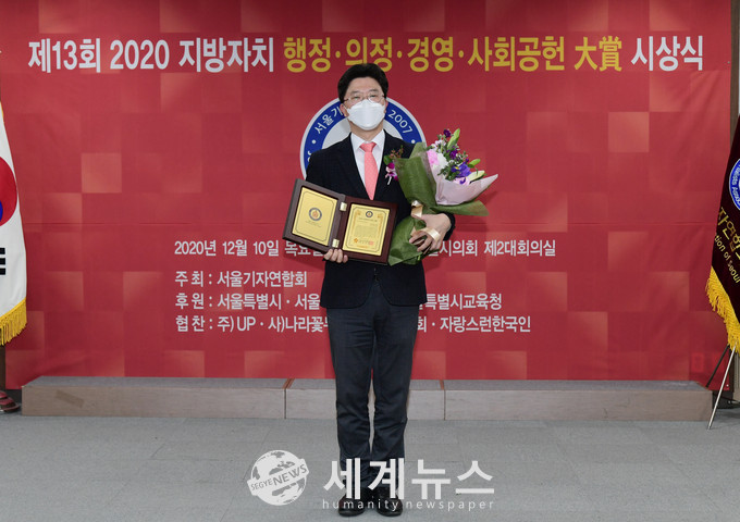 올해로 13회를 맞이한 ‘2020 지방자치 행정·의정·경영대상’은 서울기자연합회가 매년 지방자치에 공헌한 바가 크고 뛰어난 경쟁력과 도덕성이 검증된 의원에게 수여한다. 각 부문 수상자들은 전문가들의 추천과 공적심사위원회의 엄격한 심사를 거쳐 선정됐다.