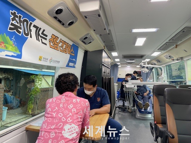 이날 전남건강버스 혈압·혈당, 콜레스테롤, 골밀도 검사, 건강상담 등의 의과 진료와 더불어 침, 뜸, 온열치료 등 한방진료, 구강검진과 틀니 관리 요령 등의 치과 진료를 통해 주민들에게 맞춤형 보건의료서비스를 제공했다.