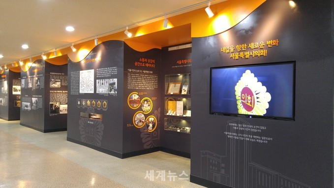 서울시의회는 이러한 역사적 사건을 고스란히 품고 있는 시의회청사를 시민들과 공유함으로써, 우리나라 민주주의와 의회정치 발전사를 되돌아보고자 본회의장이 있는 1~2층 계단과 복도 유휴공간을 활용하여 전시시설을 조성했다.