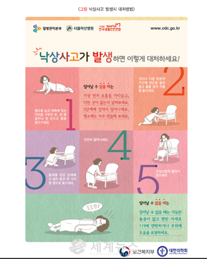 [세계뉴스 윤준필 기자] 매년 노인인구의 증가와 더불어 낙상 환자도 증가하고 있어 낙상 사고에 대한 주의가 요구되고 있다.