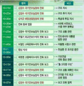 김장수 전 청와대 국가안보실장(현 주중대사)은 지난해 12월14일 국회 '최순실 국정농단 사건' 국정조사특별위원회 청문회에서 "(세월호 참사 당일 오전) 박 대통령에게 YTN을 보면 상황을 파악하는 데 도움이 될 것"이라며 TV 시청을 제안했다고 밝혔다. 당시 YTN 등 다수의 뉴스채널에선 세월호 사고 현장을 비추며 실시간으로 구조 동향을 전하고 있었다.