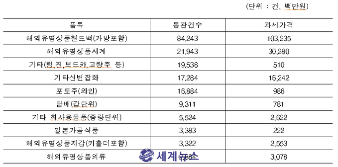 [세계뉴스] 전승원 기자 = 올해 7월까지 우리나라 여행객이 면세한도인 600달러를 초과해 반입한 휴대품 규모가 1,369억 6천2백만원으로 집계됐다. 지난해 전체 초과 반입 규모는 1,743억 6천만원으로 올해도 지난해보다 큰 폭으로 늘어날 전망이다.